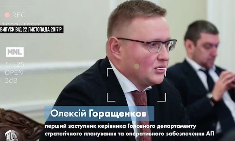 Анна Соломатина говорила о сотруднике Администрации президента Алексее Горащенкове. А вот экс-глава Нацагентства Наталия Корчак хоть и не отрицает, что знакома с Горащенковым, но его кураторство не признает. Она утверждает, что мужчина никогда не высказывал своих пожеланий по поводу результатов проверок.