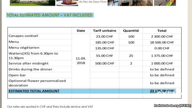 В ответе указано, что пир был рассчитан на 100 приглашенных. Стоимость питания гостей и обслуживание официантов составила 23 175 швейцарских франков (примерно 627 тыс. грн). У особы, на чье имя заказывали праздник, была та же фамилия, что и у сестры Коломойского.