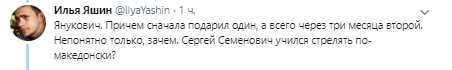 "Янукович. Причем сначала подарил один, а всего через три месяца второй. Непонятно только, зачем. Сергей Семенович учился стрелять по-македонски?" - уточнил Яшин в комментарии ниже.