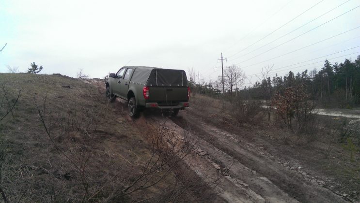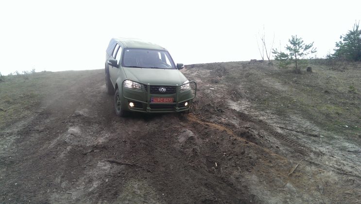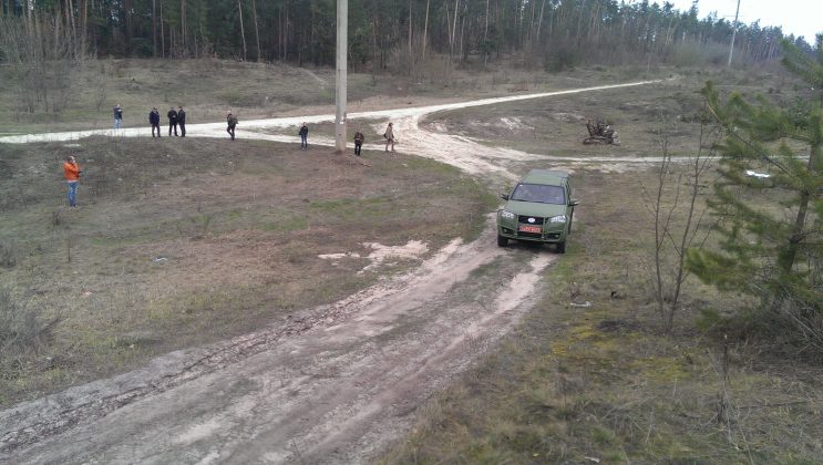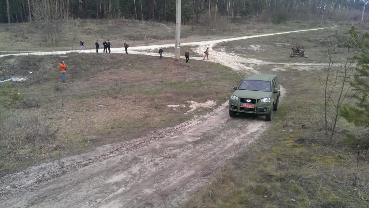 Понятно, что на заводе о своем продукте не говорят не беспристрастно. В более-менее реальных условиях эксплуатации журналистам Autonews.ua получилось увидеть «Богдан-2351» на мини-полигоне в лесничестве под Черкассами. Он включал в себя «стометровку» лесной дороги, подъем на горку и спуск с нее с уклоном порядка 14 градусов.