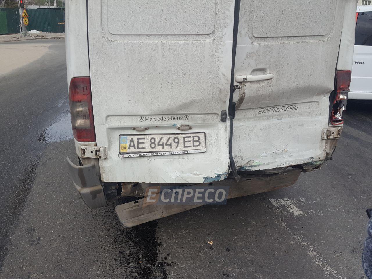 На світлофорі, де зупинилися автомобілі, нетверезий автовикрадач протаранив Mercedes Sprinter, який, своєю чергою, врізався у Daewoo Lanos. Після зіткнення викрадач намагався втекти з місця подіі, але, вочевидь, виявився занадто п’яним – поліцейські знайшли його сидячим під стовпом.