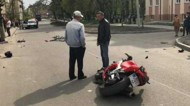 Во Львовской области в городе Броды водитель мотоцикла Honda не справился с управлением и въехал в толпу людей.