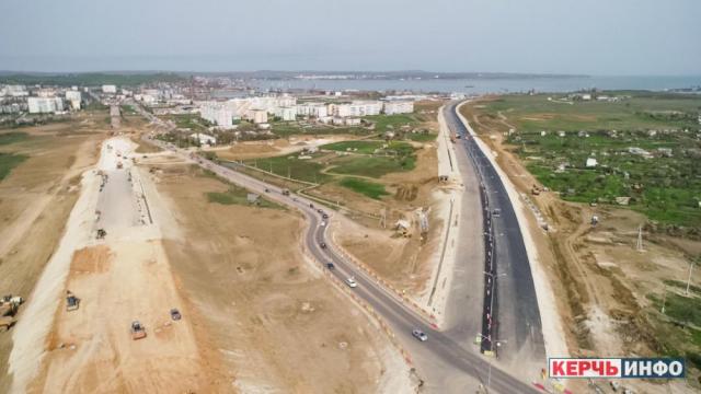 СМИ сообщают: «Со стороны пролива мы видим дорогу, по которой меньше чем через месяц поедут автомобили прямо на Керченский мост. Здесь устанавливают дорожные ограждения «.