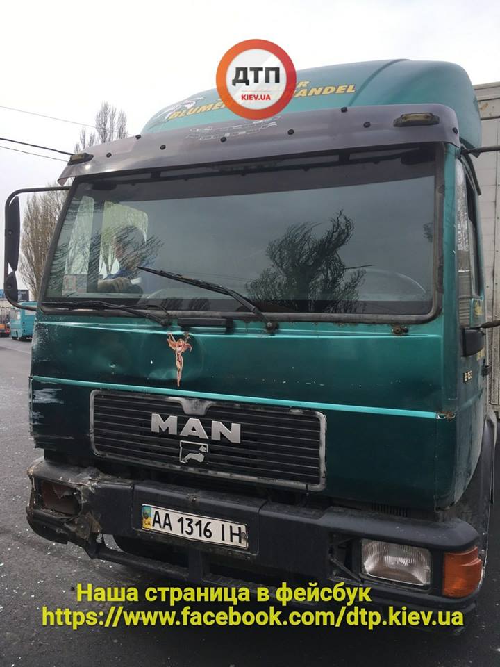 За словами очевидців, намагаючись уникнути лобового зіткнення, маршрутка різко звернула наліво, однак вантажівка все одно зацепила її.