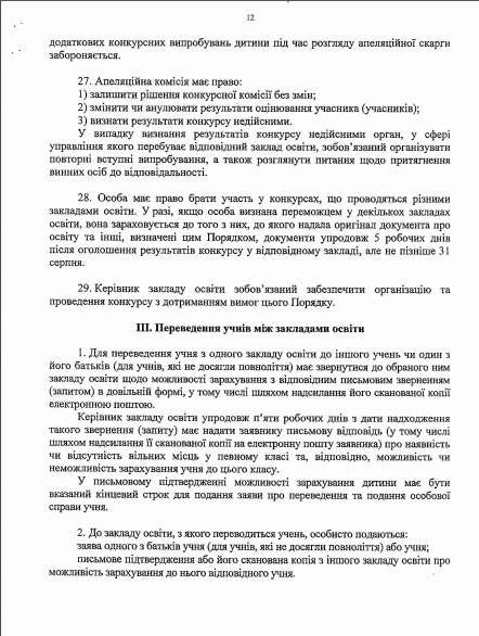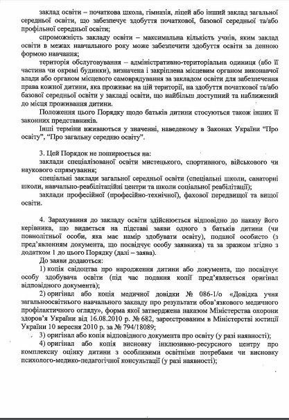 3) оригинал или копия соответствующего документа об образовании (кроме учеников первого и второго классов): табель учебных достижений за соответствующий класс, свидетельство, другой документ, подтверждающий получение образования.