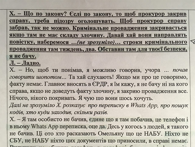 "Чтобы прокурор закрыл дело, надо подозрение объявлять. Чтобы прокурор дело забрал, так нельзя. Уголовное производство закрывается, если там нет состава преступления. Давай, пусть они направят повестку, наберемся ... сроки уголовного производства там неделю, две. Обстоятельств там для твоей безопасности я не вижу ", - говорит Холодницкий депутату.