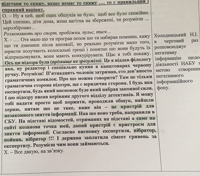 Холодницкий настаивает на полном заслушивании материалов, а также проверке, какие действия были совершены после разговоров.