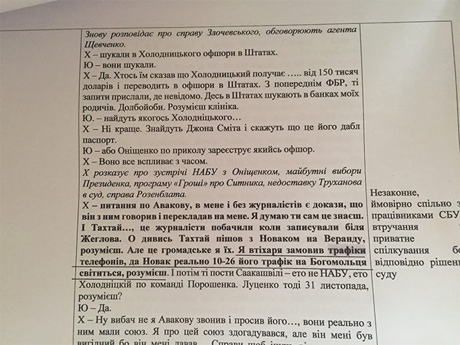В интервью УП Холодницкий объясняет этот эпизод тем, что они с Кривенко вроде просто оговаривали маневры в суде, прогнозируя ходы защиты.
