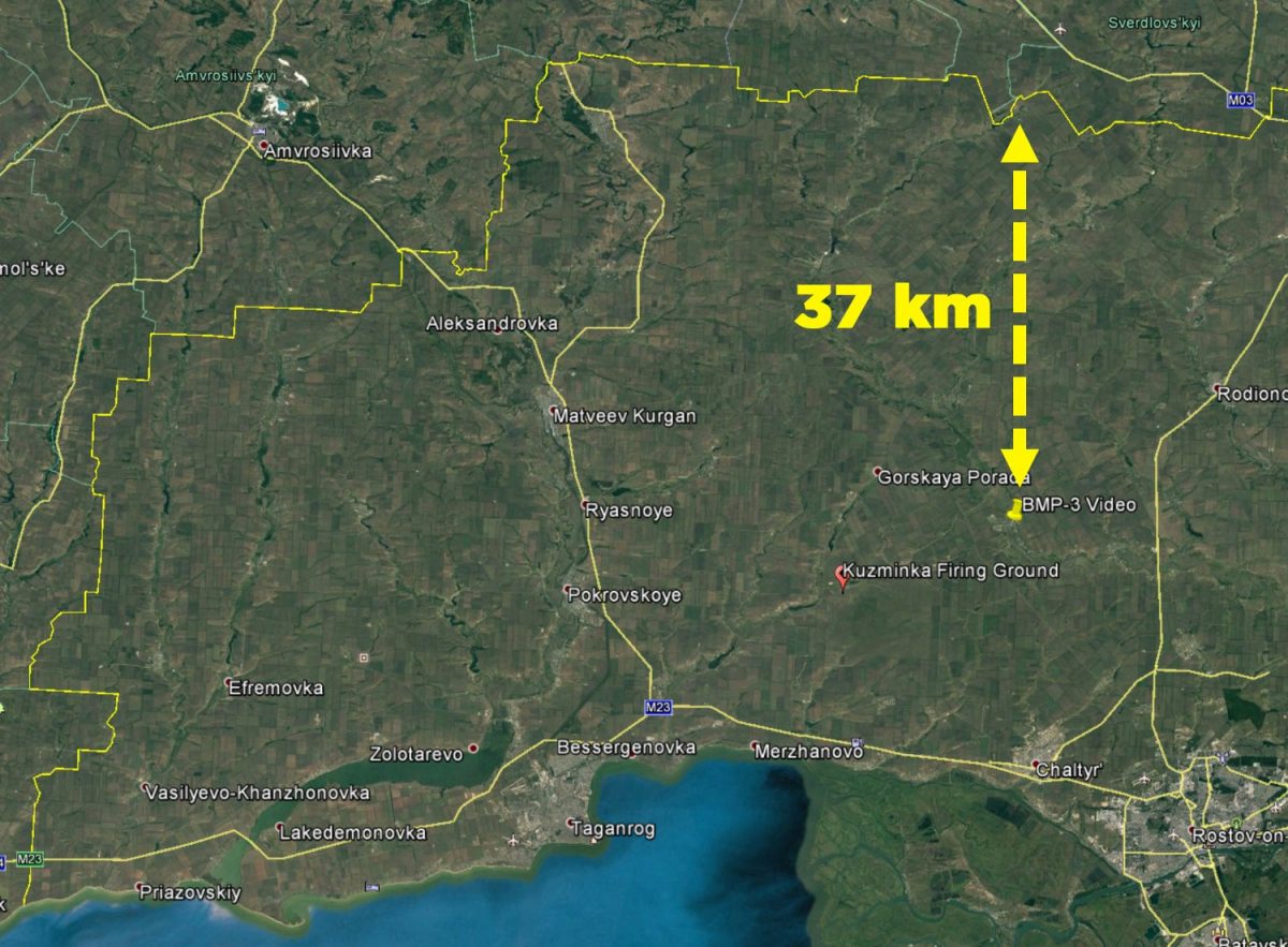 Видео было снято скорее ближе к Кузьминскому полигону — крупнейшему в России военному лагерю поблизости от границы Украины.