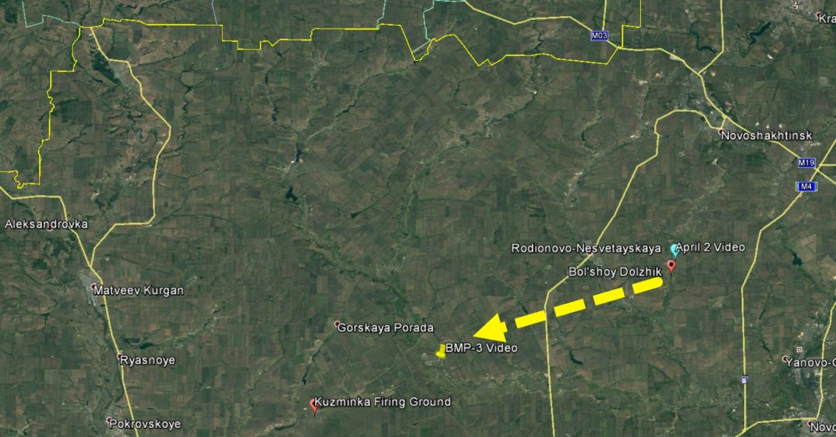 Это было не первое видео, снятое в этом районе в начале апреля. 2 апреля в соцсетях было опубликовано видео военной колонны в Ростовской области, в состав которой, как и на видео, снятом в Петровке, входили БМП-3.