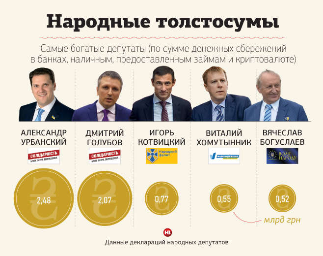 Дмитрий Голубов, депутат президентской фракции БПП и соратник мэра Одессы Геннадия Труханова, задекларировал биткоины на общую сумму 2 млрд грн. У другого одессита, Александра Урбанского, тоже представляющего БПП, — криптовалюты еще больше: на 2,4 млрд грн.