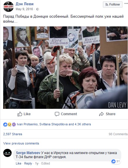 Год назад мы рассказали о многих жаждущих встречать оккупанта хлебом-солью в Киеве: https://ord-ua.com/2017/05/18/pobedobesie-v-kieve-kto-gotov-vstrechat-putina-s-hlebom-solyu-/. Но среди идеологов и пропагандистов Бессмертного полка растет конкуренция.