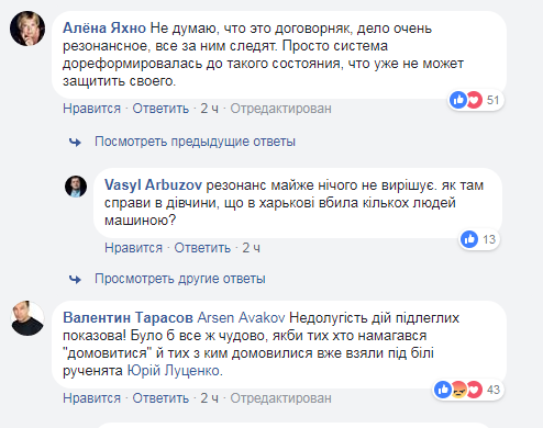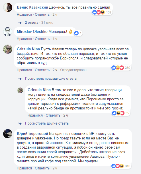 "Пусть Аваков теперь по цепочке увольняет всех за бездействие. Добро пожаловать в реальность, Мустафа... Вот и всплывает вся гнилость ментовско-прокурорской-судейской системы. Уважение за позицию, по всему остальному - это диагноз правоохранительной системы", - комментируют другие пользователи.