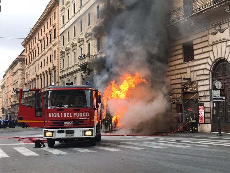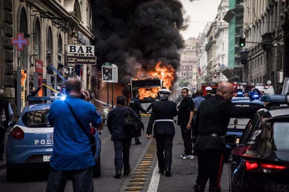 В итальянском Риме 8 мая автобус столичной общественной транспортной компании, внезапно взорвался и загорелся на Виа дель Тритоне.