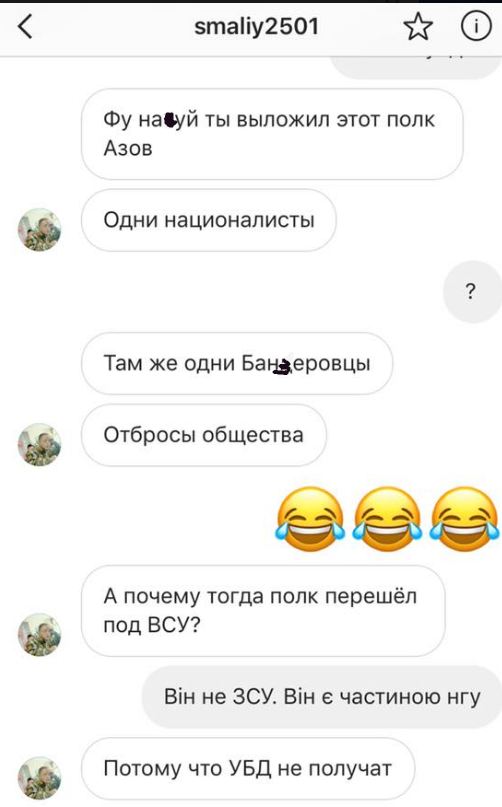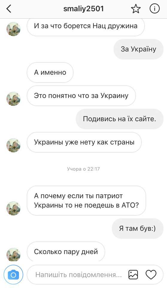 "Хочу вас познакомить с молодым мальчиком, который ориентировочно проходит службу в качестве курсанта ВСУ в Харьковском национальном университете Воздушных Сил имени Ивана Кожедуба в городе Чугуев. Этот "гений" пишет мне странные сообщения в "Инстаграм", – написал он.
