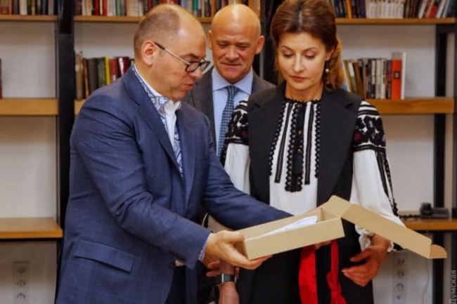 На фото, размещенных на сайте, видно, что рядом с женой президента находятся мэр Одессы Труханов и председатель Одесской ОГА Максим Степанов.
