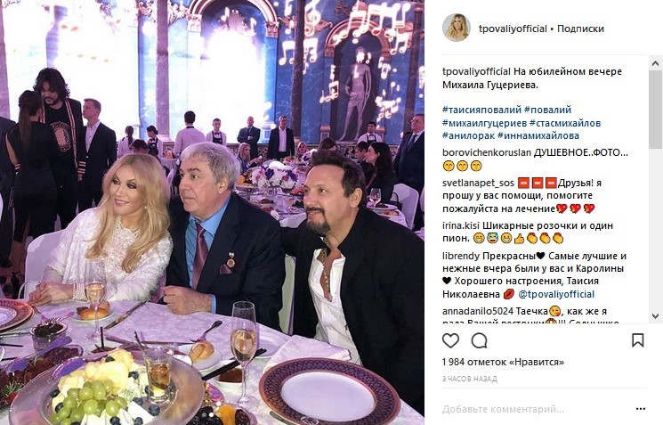 "На ювілейному вечорі Михайла Гуцерієва", - коротко прокоментувала знімки Повалій.