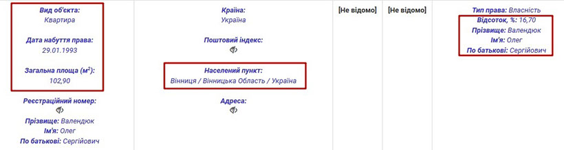 Оскільки Олег Валендюк родом із Вінниці, то там у нього залишилася квартира площею 102 кв. м. В електронних деклараціях за 2015 та 2016 роки він зазначив, що є власником 16,7 % цього житла з 1993 року. Тож недекларування квартири у своїх деклараціях за 2013 та 2014 роках може свідчити про намагання приховати свої статки. У Реєстрі речових прав на нерухоме майно можемо побачити, що іншими власниками цієї квартири є родичі Олега Сергійовича, зокрема його матір Лариса Пимонівна Валендюк.