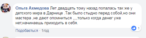 "Лет двадцать тому назад попалась так же у детского мира на Дарнице. Так было стыдно перед собой, но они мастера, не дают опомниться", ― поделилась опытом Ольга Ахмедова.