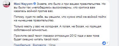 В подтверждение своих слов она передала в Facebook якобы разговор двох пожилых украинок, у которых нет денег на еду.
