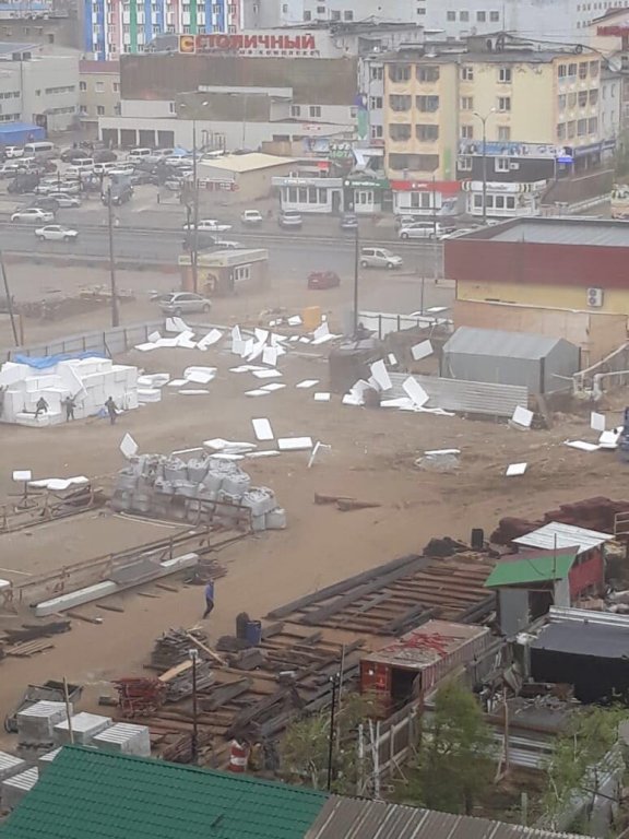 В понедельник днем, 28 мая, российский город Якутск накрыл сильный ураган. Стихия разрушила остановки общественного транспорта и сорвала светофоры.