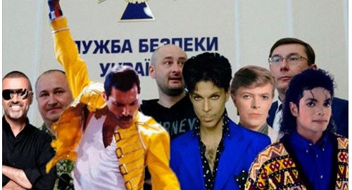 А также брифинг в СБУ представляют и так - когда вместе с Бабченко вернулись все известные артисты, в том числе Майкл Джексон, Принс, Фредди Меркьюри и другие.