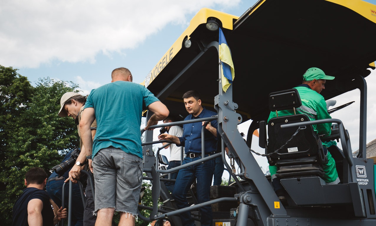 – Не зупиняйтеся, бо прилипнете і залишитеся на цій дорозі, – досить символічно сказав Гройсман на ходу, щоправда, не зрозуміло кому конкретно. Біля одного з найбільших асфальтовкладальників – не стримався і поліз у Кабіну.