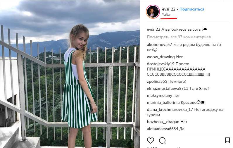 На своей личной странице в социальной сети Instagram девочка опубликовала фотографии, сделанные в оккупированной Ялте.