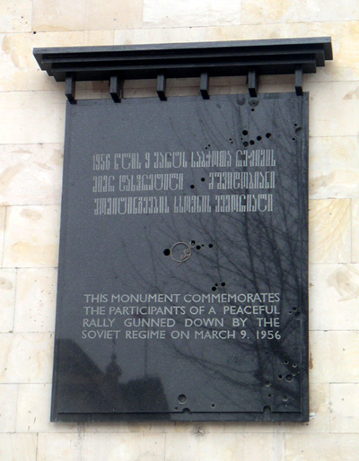 Мемориальная доска в Тбилиси о “расстреле мирной демонстрации советским режимом”.