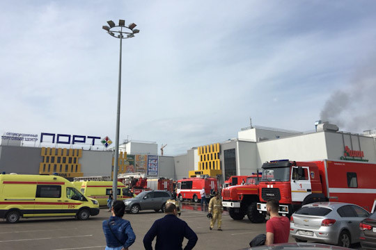 В Казани произошел пожар в крупном торговом центре "Порт". Весь персонал, находившийся в здании, эвакуировали.
