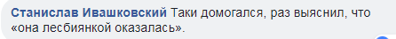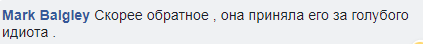 "Скорее обратное, она приняла его за голубого идиота", "Таки домогался, раз выяснил, что "она лесбиянкой оказалась", "Это ужасно смешно", "Домогался, значит. Вот шельмец".