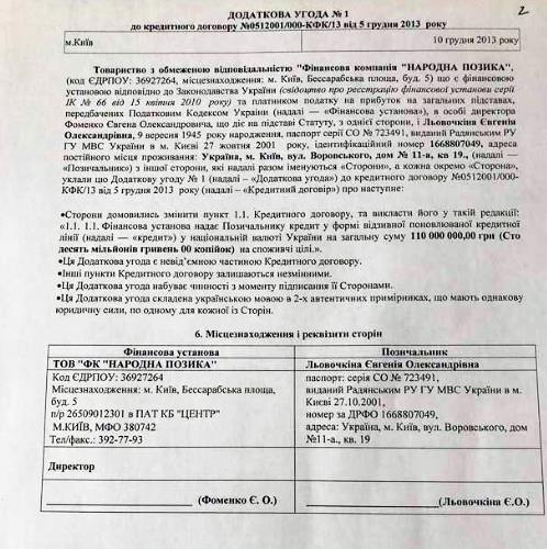 В частности, опубликована схема создания семьей Левочкиных ТОВ «ФК «Народна позика», который дал этой же семье в долг более 110 млн грн. В документах также содержатся расписки депутатов Сергея Левочкина и Юлии Левочкиной, которые берут в долг огромные суммы (5 и 7 млн грн) у собственной матери, до этого одолжившей у «Народной позики» фантастическую сумму в 110 млн грн.