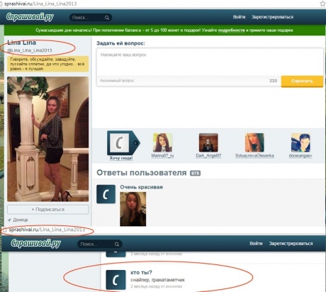 В социальных сетях снайперша называет себя Анастасией Ворошиловой под ником "Экстези". В других сетях она подписана под другой фамилией, передает "Украинская правда".
