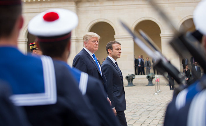 Франция, похоже, больше, чем Германия, расположена к Трампу благодаря харизматичному молодому президенту Эммануэлю Макрону, радушно принимавшему президента США в День взятия Бастилии. Директор по исследованиям парижского университета Sciences Po Жак Рупник объяснил это так: «Людей в некотором роде сбили с толку попытки Макрона снискать расположение Трампа. Но так как он очень тщеславен и для него слишком много значат личные моменты, если убедить Трампа, что французы — это те, кто устраивает военные парады и может пригласить его на Эйфелеву башню, то можно будет влиять на него в важных для Франции вопросах, таких как соглашение по изменениям климата, или Сирия, или самое главное — Иран». Мандевилль из Le Figaro сказала: «Трампа нужно просвещать. Он обнаружил (вероятно, раньше он этого не знал), что Франция — страна с давней историей и военными традициями». Парад явно впечатлил Трампа до такой степени, что он, вернувшись домой, распорядился, чтобы министерство обороны устроило военный парад в Вашингтоне.