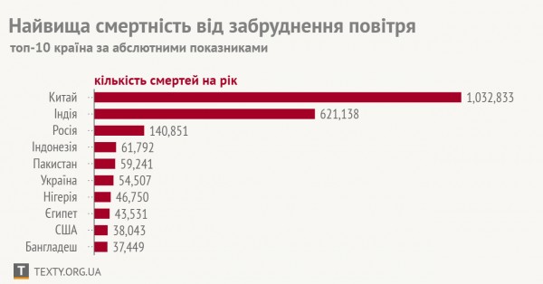 Кроме этого, в Украине почти не собирают информацию о качестве воздуха и количество смертей, связанных с ним. В том же отчете ВОЗ «неопределенность» (uncertainty) показателя смертности для Украины также является крупнейшей из всех стран.