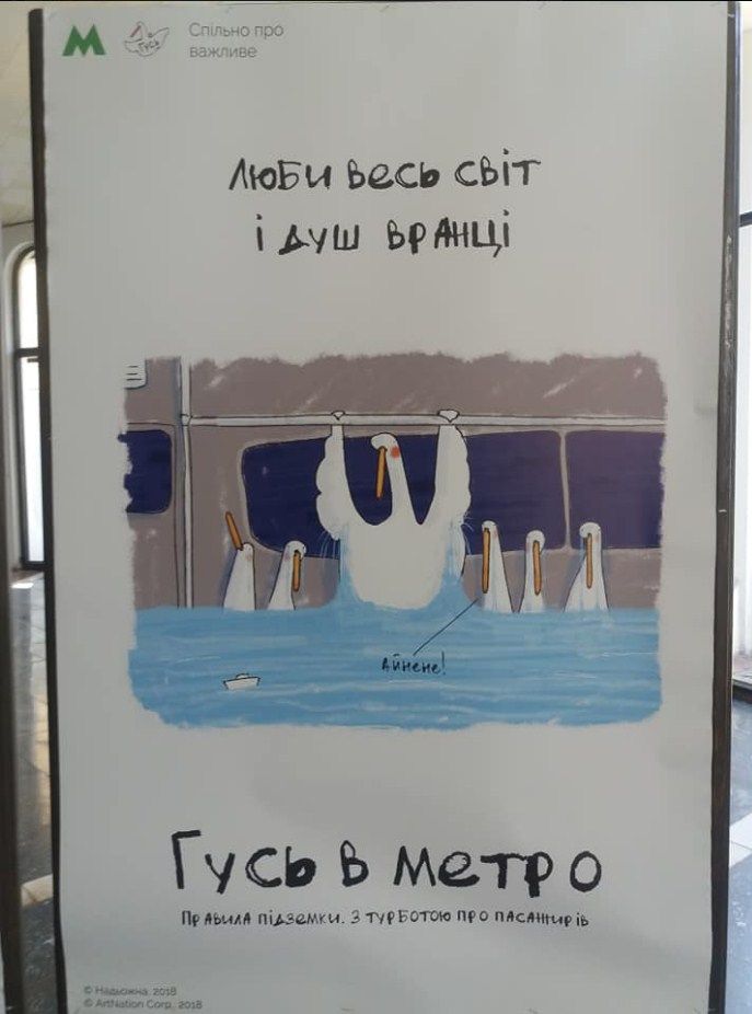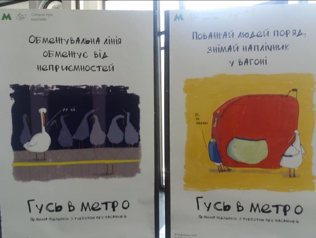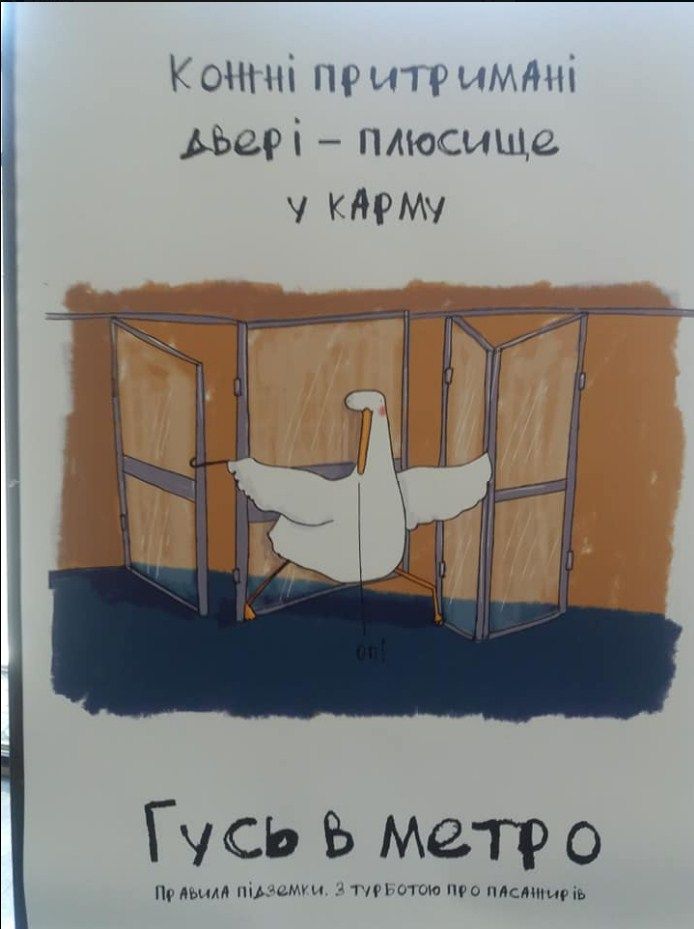 В киевском метро появились плакаты, где известный интернет-персонаж Гусь будет рассказывать пассажирам о правилах поведения в метрополитене.