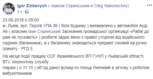 Теги: Спринский ИванВзрывчаткаНацполицияЗинкевич ИгорьАктивистыГранатаЛьвов