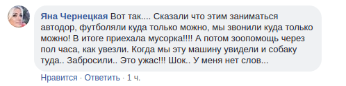 "Животные показывают истинную дружбу и преданность, а то гомосапиенс забыл об этом , люди хуже животных!!!!", "Черная собака даже кушать не хочет", "Сказали что этим заниматься автодор, футболяли куда только можно, мы звонили куда только можно! В итоге приехала мусорка!!!! А потом зоопомощь через пол часа, как увезли", - отмечают пользователи.