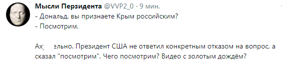 Нагадаємо, коли журналісти в спілкуванні з главою Білого дому торкнулися теми анексії півострова і запитали про можливість її визнання американцями, Трамп відповів: “Подивимося” (“We’re going to have to see”), – пише Сегодня.