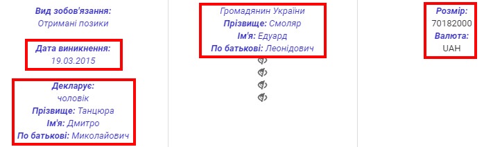Из деклараций супругов известно о еще одной интересной ссуде. Только на этот раз человек, который имеет возможность дать в кредит 5 млн долларов, сам почему-то берет в долг почти 2,6 млн долларов США. Согласно декларации Дмитрий Николаевич Танцюра в 2015 году взял в долг 70 млн грн у Эдуарда Леонидовича Смоляра. Человек с такими же данными является депутатом Одесского городского совета пятого созыва и руководителем управления коммунальной собственности города. На какие именно нужды понадобились депутату такие средства - неизвестно. Но очень странно, что и в 2016-м, и в 2017-м годах муж судьи декларирует наличие наличных средств в таком же размере. Так зачем же брать кредит, чтобы два года его не тратить, а держать в наличности?