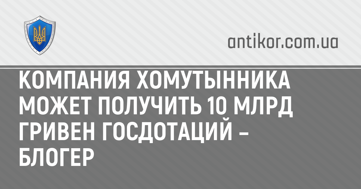Компания Хомутынника может получить 10 млрд гривен госдотаций – блогер