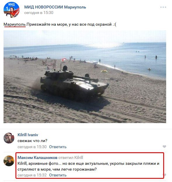 Так, на фото показан танк, а подпись гласит, что "укры закрыли пляжи и стреляют в море".