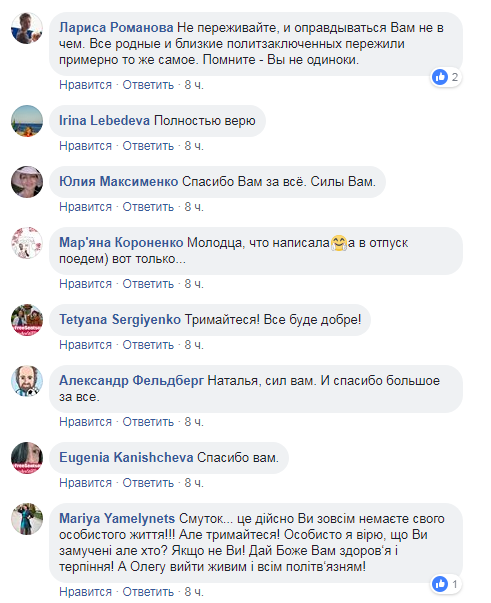 Кроме того, сестра Сенцова объяснила свою позицию по другим острым вопросам.