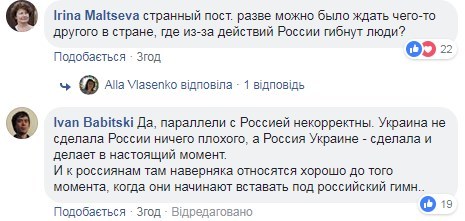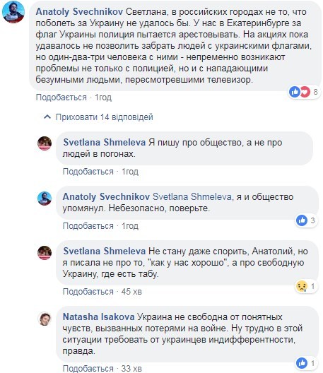 Пост женщины вызвал бурное обсуждение среди подписчиков. Примечательно, что даже ее сограждане подчеркнули, что Россия аннексировала Крым и развязала войну на Донбассе, и именно из-за РФ в Украине погибли несколько тысяч человек.