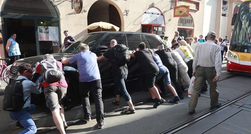 Инцидент произошел в центральном районе Прага 5 на Лидицкой улице. Водитель оставил авто припаркованным у путей. Трамваи не могли проехать с 17:49 до 18:25.