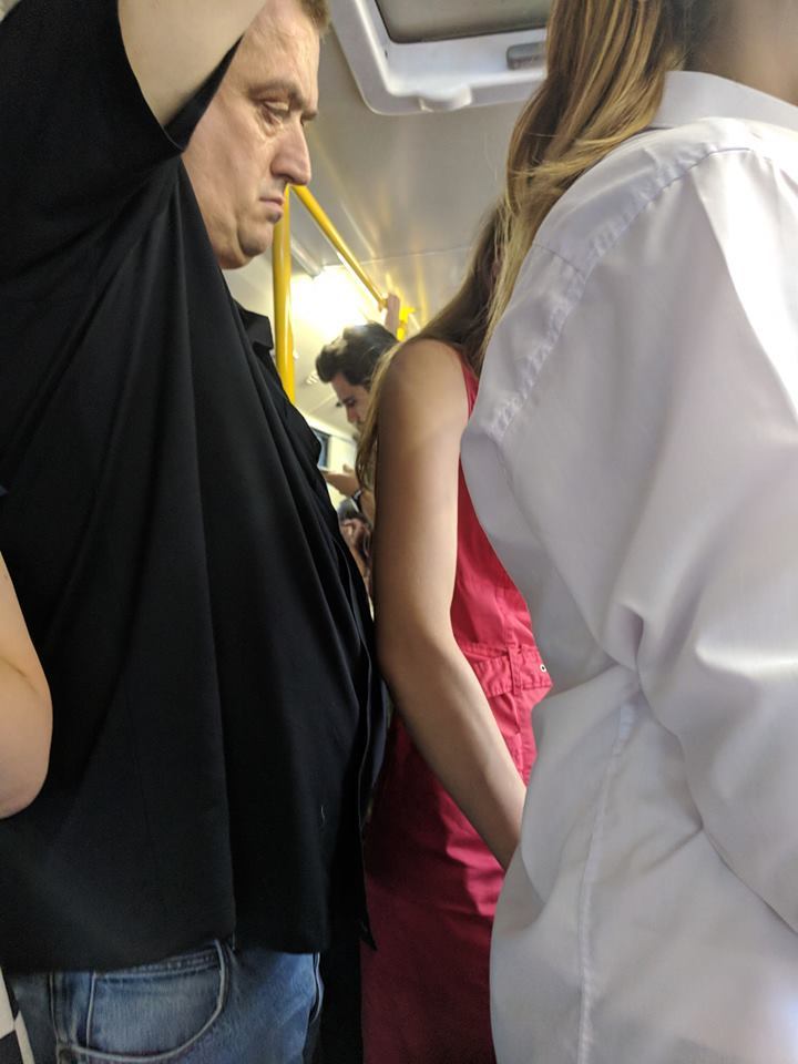 В одном из пабликов Соломенского района Киева появилось фото и видео с мужчиной, который незаметно пристает к женщинам в общественном транспорте.