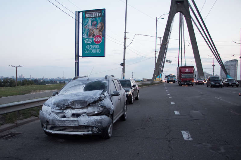 В Киеве на Северном мосту из-за аварии загорелся автомобиль