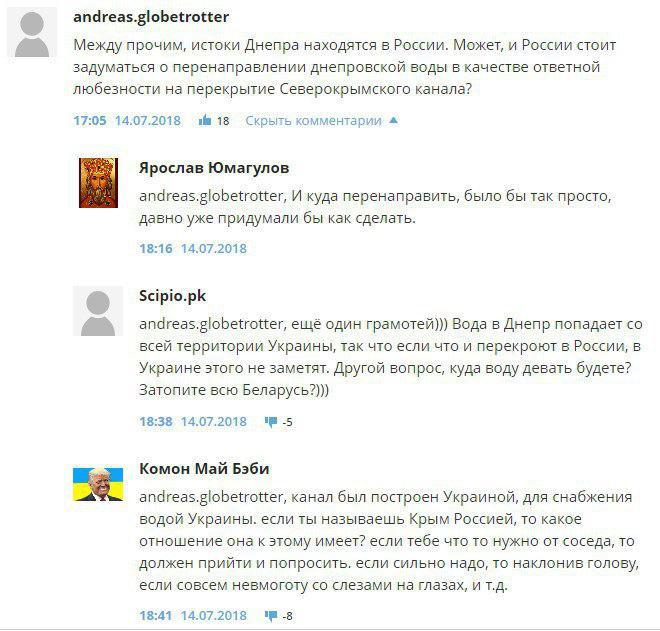 Заявление Могилева быстро добралось и к топовым СМИ России и стало весьма обсуждаемой новостью. Россияне в комментариях уже заговорили о мести, предложив перекрыть истоки Днепра, которые, как они уверены, находятся в России. Некоторые из комментаторов и вовсе назвали такую инициативу геноцидом.