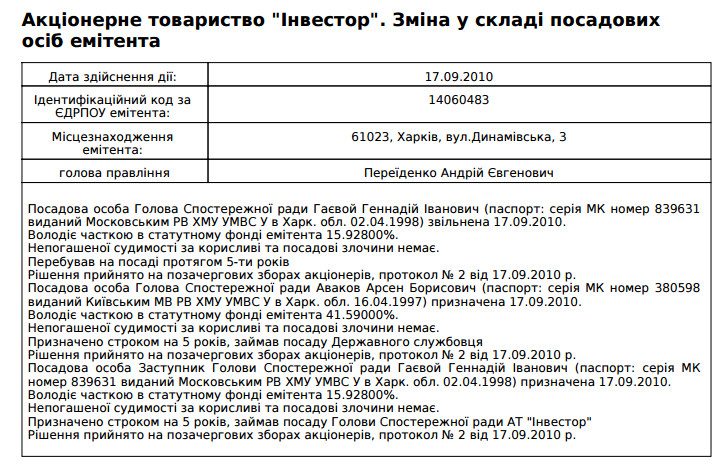 Андрей Перееденко - давний бизнес-партнер Арсена Авакова. Например, согласно данным отчетности эмитентов ценных бумаг, в 2010 году он был председателем правления АО "Инвестор", где нынешний министр внутренних дел был крупнейшим акционером и председателем наблюдательного совета: