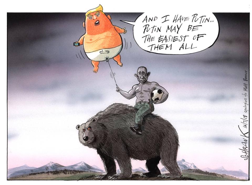 Газета The Washington Post, которое открыто занимает жесткую антитрамповскую позицию, на следующей день после саммита в Хельсинки опубликовало серию критических статей о действиях главы Белого дома, при этом редакционную статью об этой встрече издание озаглавило "Трамп только что вступил в сговор с Россией. Открыто".